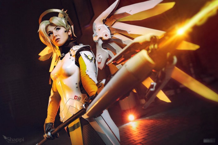 Лиз Брикли в прелестном костюме Ангела - лекаря из Overwatch.