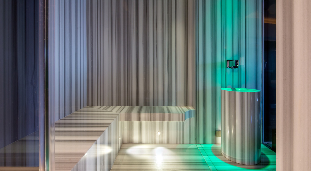 Интерьер наполнен дорогим итальянским мрамором Calacatta и люстрами Baccarat.