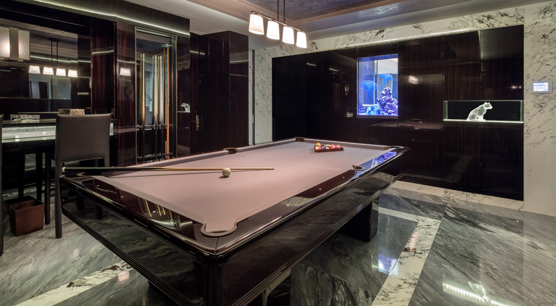 Бильярдный стол в игровой комнате.