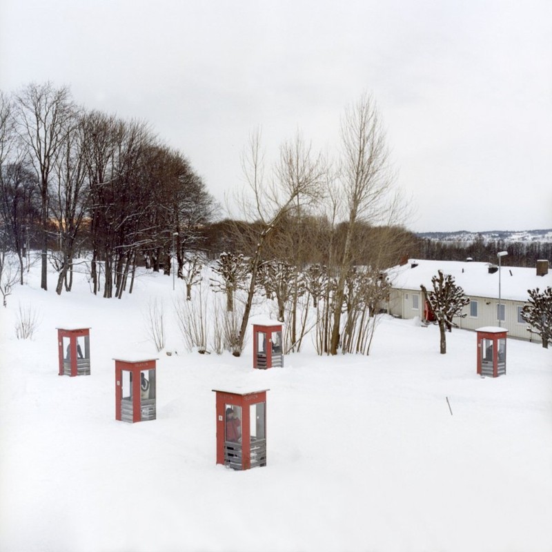 Телефонные кабины на острове. Заключенным разрешается делать телефонные звонки два раза в день, утром и вечером.