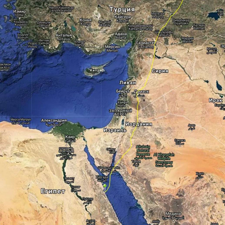 Птица уже пролетела над Красным морем, побывала в окрестностях египетской Хургады, полакомилась рыбой на Ниле и сейчас находится на границе между Египтом и Суданом.