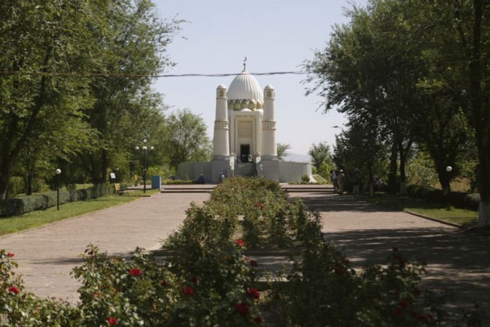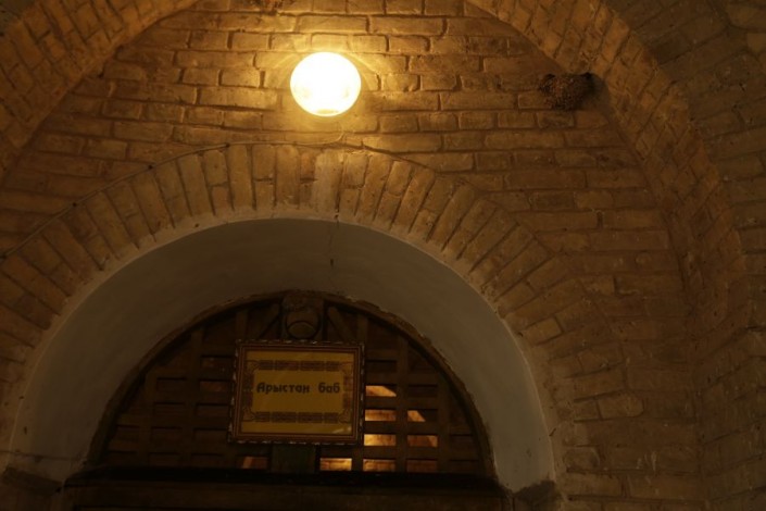 Затем участники фестиваля двинулись к мавзолею Арыстан-Баба. По преданию, святой Арыстан-Баб был духовным наставником и учителем Ахмета Яссауи.