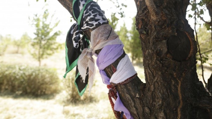 Женщины после совершения паломничества привязывают свои платки к дереву неподалеку от мавзолея. Говорят, что именно это дерево живет дольше других в этом засушливом регионе.