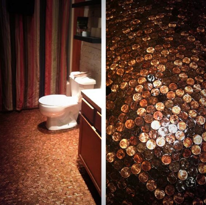 Вот еще несколько вдохновляющих идей для отделки пола монетами, например, в ванной комнате.