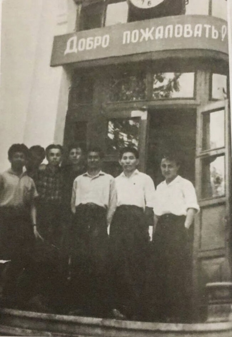 Выпускники выбирают, куда поступать. Едил в первом ряду. 1957 год