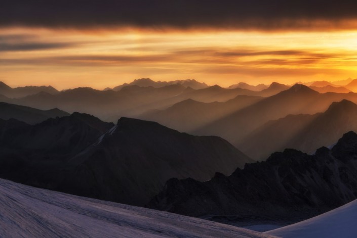 Рассвет на вершине пика Астана (4555м), Ущелье Баянкол, Центральный Тянь-Шань. Август, 2017 год. © Ольга Кулакова.