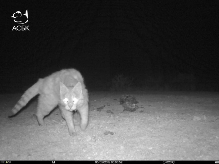Степной кот, попавший в фотоловушки, установленные на Южном Устюрте. © АСБК