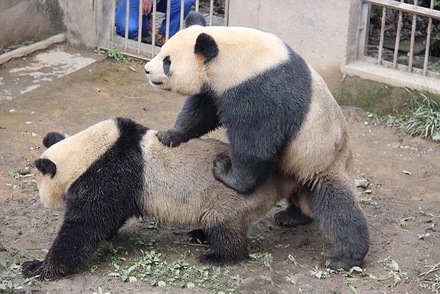 Заметив, что животные "в настроении", смотрители парка при помощи бамбуковых стволов подгоняют их друг к другу, тем самым форсируя секс. Отмечается, что при желании совокупиться самки панд издают громкие и необычные звуки, а самцы для привлечения партнерш издают определенный запах.