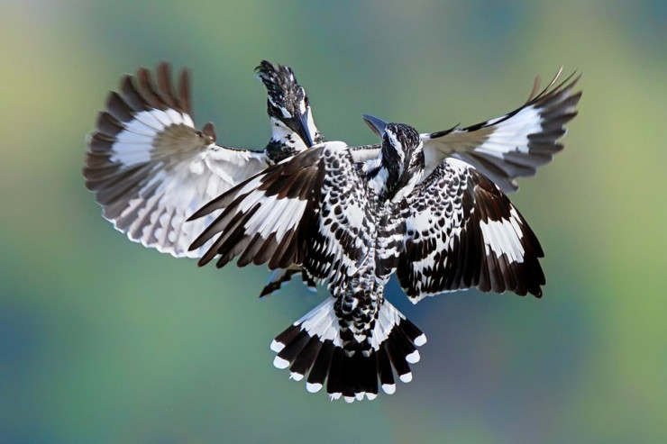 Пегий зимородок обитает в Африке и в Азии. Фотография сделана во время зимнего брачного сезона.
