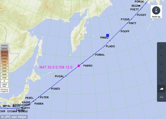 Голландский пилот по имени Ван Хейст рассказал, что спустя пять часов полета он заметил одиночную сильную вспышку света, направленную вертикально вверх. Никаких других вспышек, никаких признаков грозы в этом районе радар не фиксировал.