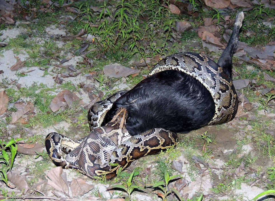 На то, чтобы целиком проглотить добычу, гигантской змее понадобилось около четырех часов. После этого хищник медленно уполз в лес.
