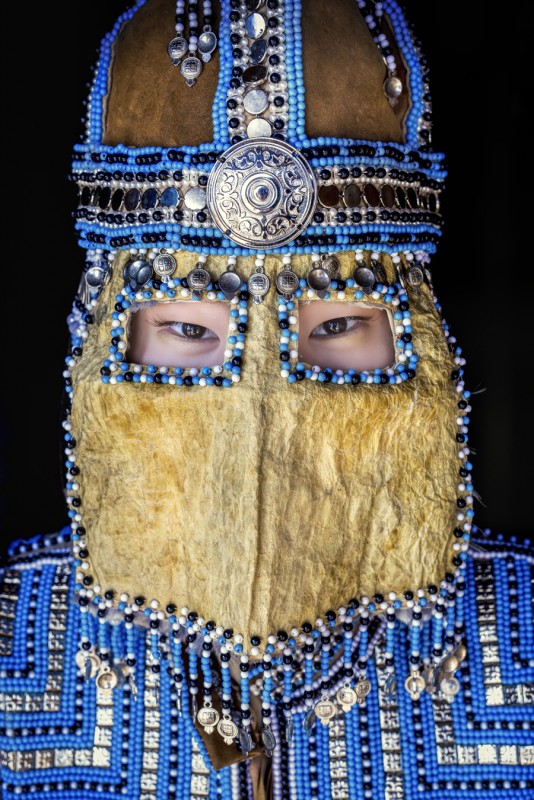 Девушка из республики Саха в традиционной свадебной маске.