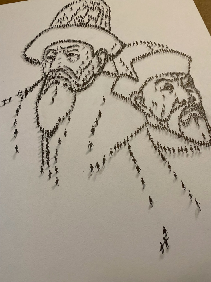 Задумка художницы - нарисовать портрет, используя маленьких человечков - несет особый посыл.