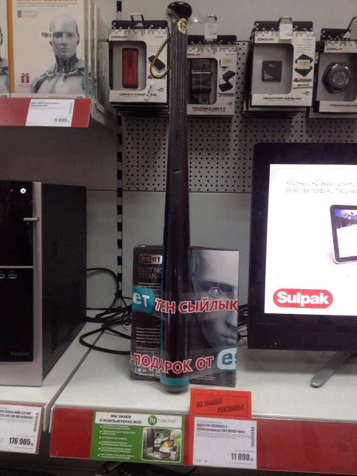 Только в Таразе можно купить антивирус и получить в подарок биту.