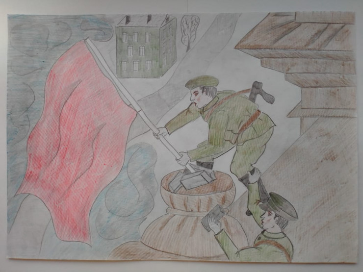 "Пример для всех поколений". Подвиг Рахимжана Кошкарбаева и Григория Булатова в рисунках детей Рисунок ©Аружан Алдабергенова