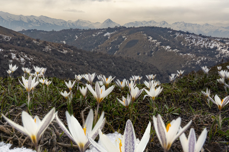 Раскрытие подснежников в горах Алматы заснял фотограф