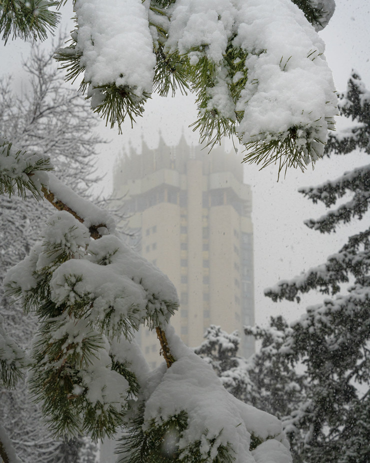 Во время снегопада в городе фотограф Дмитрий Доценко также сделал несколько красивых кадров заснеженного Алматы в конце марта.