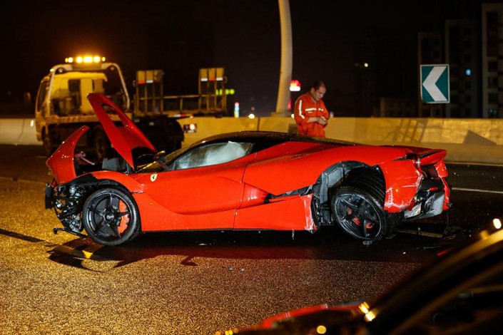 Супергибрид под управлением некого юного пилота разбился в Шанхае - предположительно, из-за сочетания мокрой дороги, высокой скорости и - чего уж там - неопытности водителя. Сам паренек, к счастью, не пострадал.