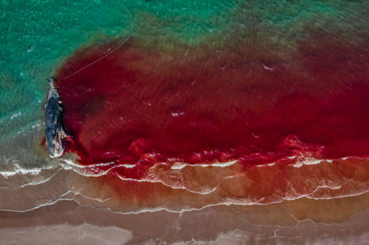 "Всегда грустно видеть мертвое животное. Но это зрелище было и вовсе неописуемым. С земли картина уже была устрашающей. Но, посмотрев сверху с дрона, я понял, что ситуация была еще более шокирующей и драматичной. Я увидел невероятно большую реку крови, выходящую из кашалота".