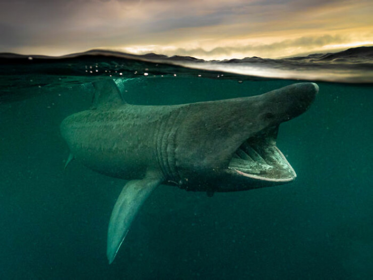 "Микроскопический планктон привлекает массивную гигантскую акулу, которая движется вверх по западному побережью Британии в узкий канал между островами Колл и Тайри. Хотя их миграция предсказуема, встреча с ними по-прежнему требует элемента удачи. Провести с ними поздний летний вечер было моей мечтой. Раньше я фотографировал их, но мне никогда не удавалось сделать такой снимок в лоб.