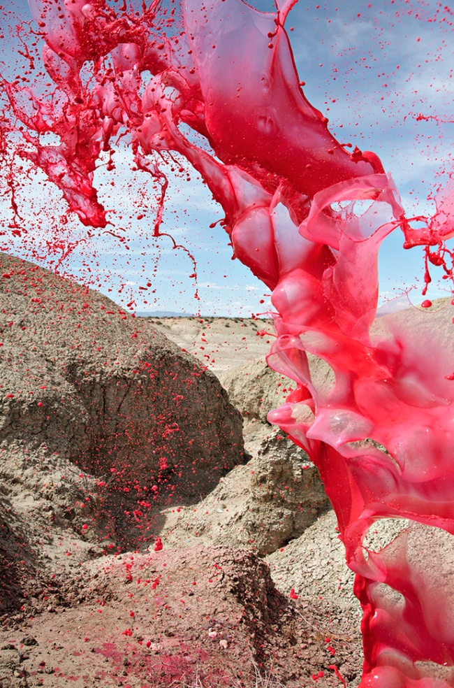 Основатели студии Floto + Warner фотографы Кассандра Уорнер и Джереми Флото представили серию ярких пейзажей Clourant. На фотографиях запечатлены фигуры из застывших в воздухе брызг краски, которые невозможно увидеть собственными глазами: фотографии сделаны при выдержке в 1/3200 секунды.