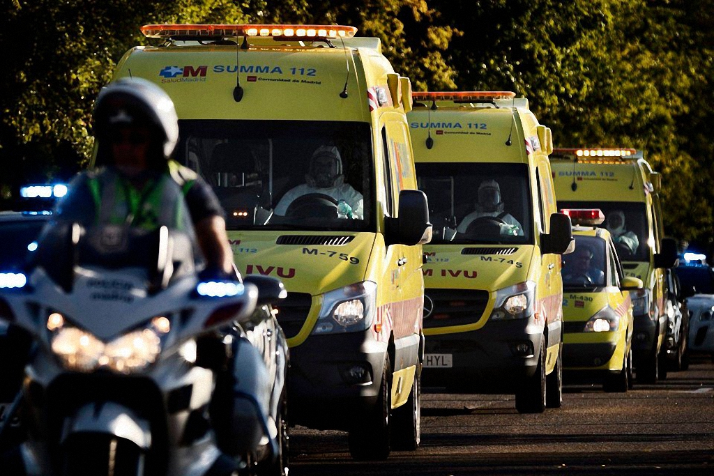 Транспорт, в котором перевозили больного священника из Торрихона в больницу, сопровождала колонна полицейских и машин "скорой помощи".