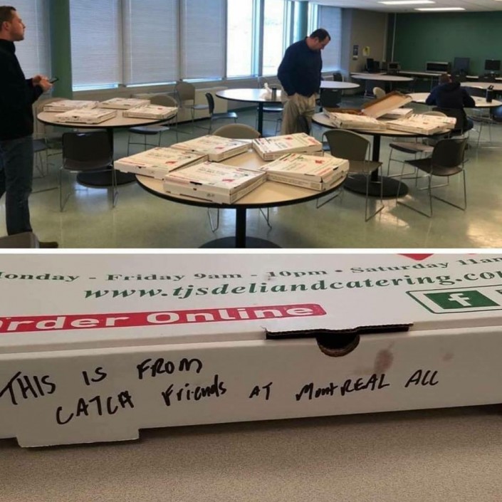 Инициаторами такого необычного жеста стали сотрудники Центра управления полетами в Эдмонтоне. Они отправили пиццу коллегам из города Анкоридж (штат Аляска). В итоге акцию поддержали все семь контрольных центров Канады и работники многих контрольных башен.