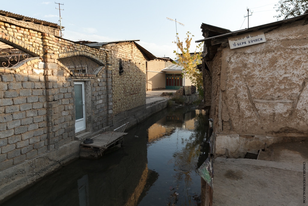 А вот так выглядит "Ташкентская Венеция", как ее назвал уважаемый, собственно, по чьей наводке я сюда и пришел. Все дома максимум одноэтажные, из глинобитного кирпича, но аккуратно побелены или покрашены. Называется это все "махалля" - традиционная узбекская одноэтажная застройка такого рода. Она есть в каждом городе.