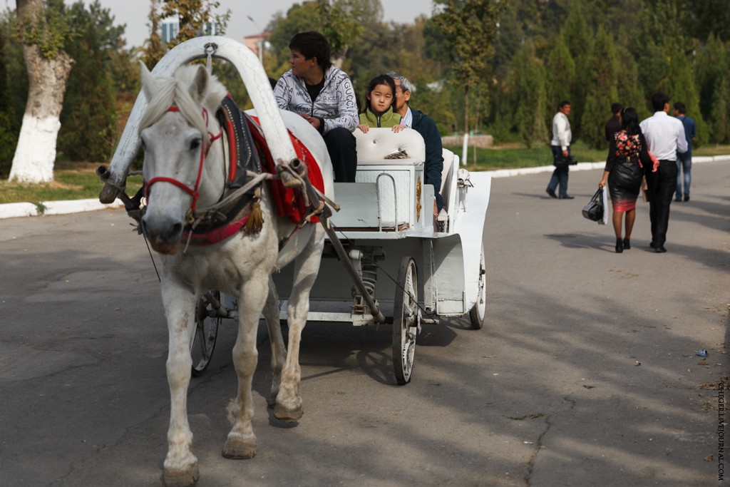 Обратите внимание на машины - характерная картина: "матисы" и "нексии", которых больше не выпускают, и "спарки" с "лачетти", причем все белого цвета. В Ташкенте, правда, еще можно увидеть и другие машины, иногда даже БМВ и "мерседесы", а вот в других городах это исключительно белые модели, перечисленные выше.