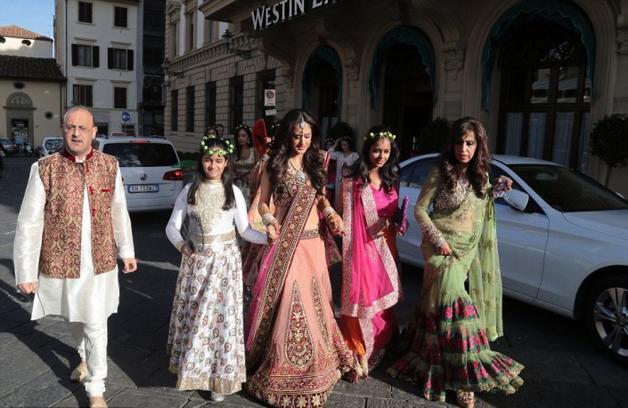 Торжества длились три дня в одном из самых красивых и романтичных городов Италии - Флоренции. На свадьбу прибыло около 500 гостей. Их разместили в самых шикарных отелях. Команда высококлассных поваров постоянно обслуживала гостей церемонии.
