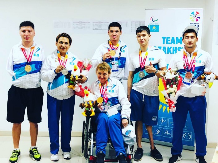 Сиязбек Далиев (слева), Ержан Салимгереев (в центре), Зульфия Габидуллина и другие призеры Параигр из Казахстана