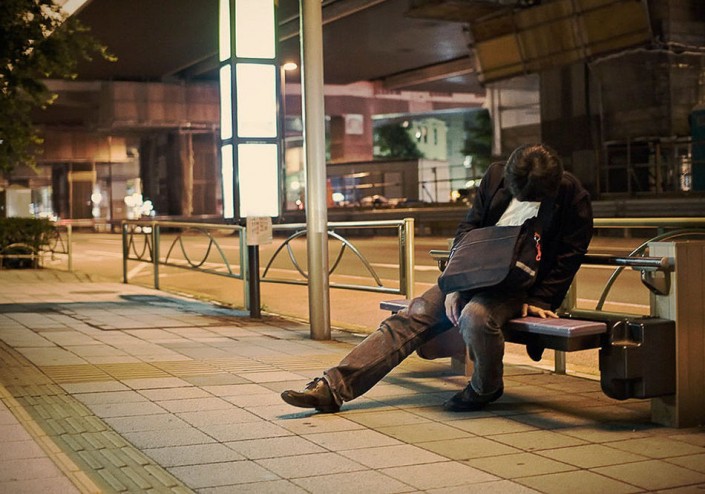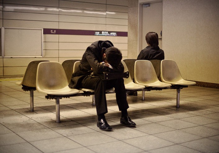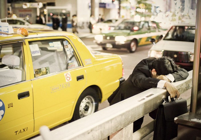Фотограф Адриан Стори решил показать всему миру нелегкую жизнь работников в Стране восходящего солнца и создал серию фотографий, на которых запечатлел несчастных японцев, измотанных бесконечной работой и побежденных сном в вовсе не предназначенных для этого местах.