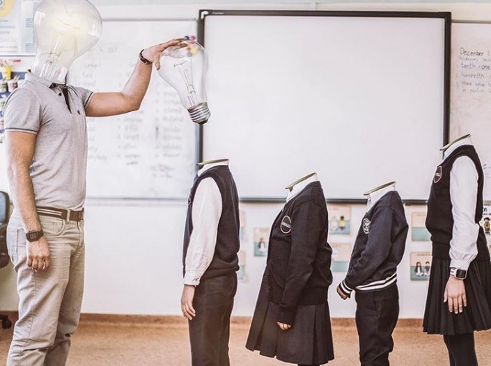 Через свои изображения фотографу все чаще хочется передать некий смысл. К примеру, на этом снимке он хотел показать, что преподавателям не стоит заставлять учеников что-то делать: они должны лишь подкидывать идею, чтобы ребенок загорался ею и стремился получить новые знания.