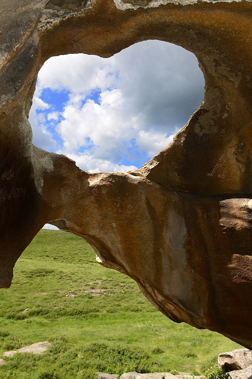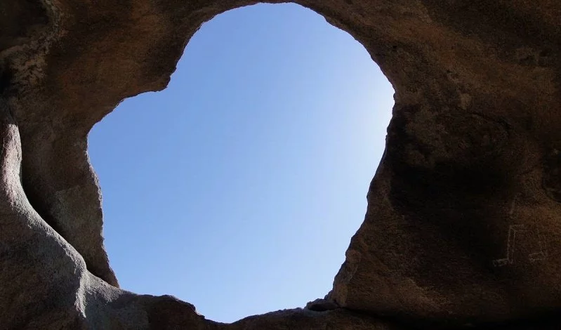 В урочище Ак-Баур в Восточном Казахстане есть такое чудо - природное отверстие "крыши" грота в виде сердца. Оно имеет следы обработки, возможно, оно было подправлено человеком, который сделал выступ-мушку для фиксации движения основных созвездий ночного неба.