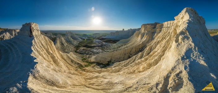 Плато Устюрт - идеальная пустынная равнина, расположенная на западе Казахстана, между Аральским и Каспийским морями. Плато подобно Большому Барьерному Рифу хорошо видно из космоса. Суммарная протяженность цепи устюртских чинков составляет несколько сотен километров.