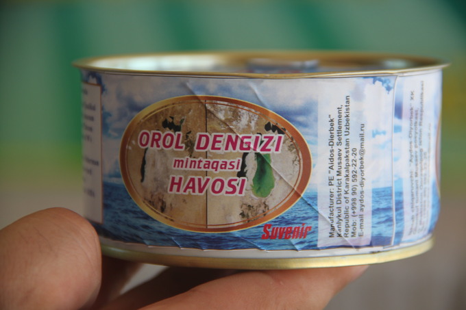 Одно из частных предприятий Каракалпакстана начало выпуск в качестве сувениров консервных банок с воздухом Приаралья. На жестяных банках с подписью "Воздух региона Аральского моря" изображен первозданный вид одного из крупнейших озер в мире со спутника.