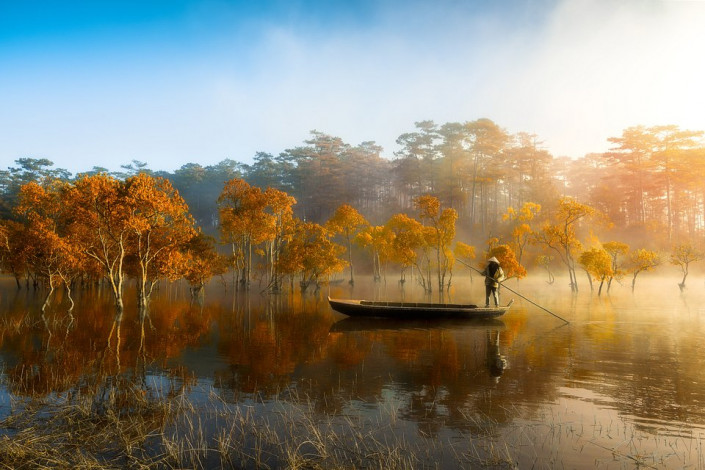 "Когда приходит осень, деревья на озере Туйен Лам становятся пышными, создавая красивые пейзажи", - отметил фотограф.