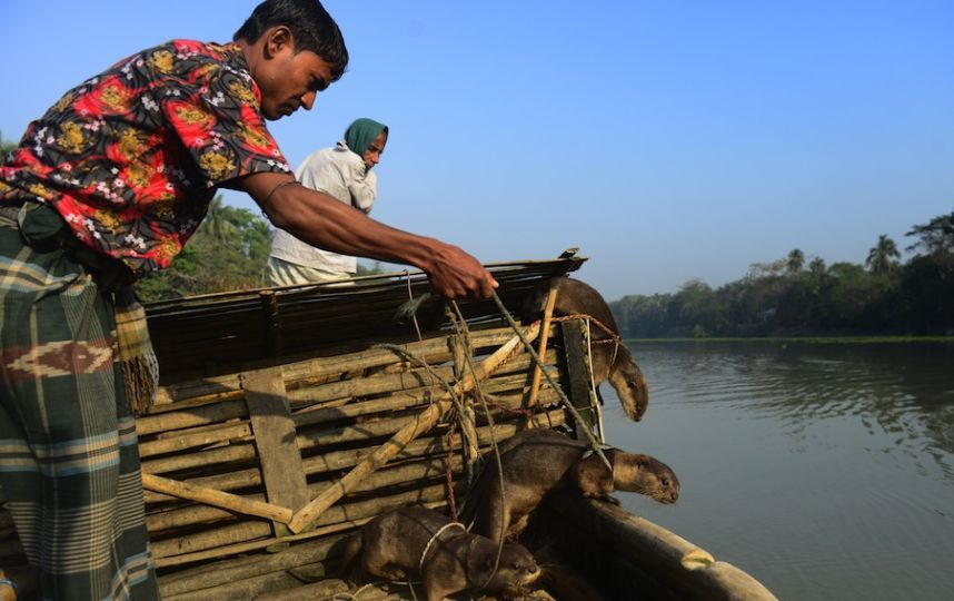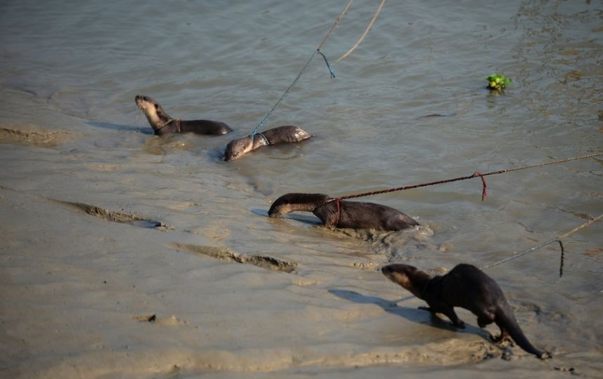 Ловля рыб при помощи выдр - привычный для жителей Бангладеш способ.