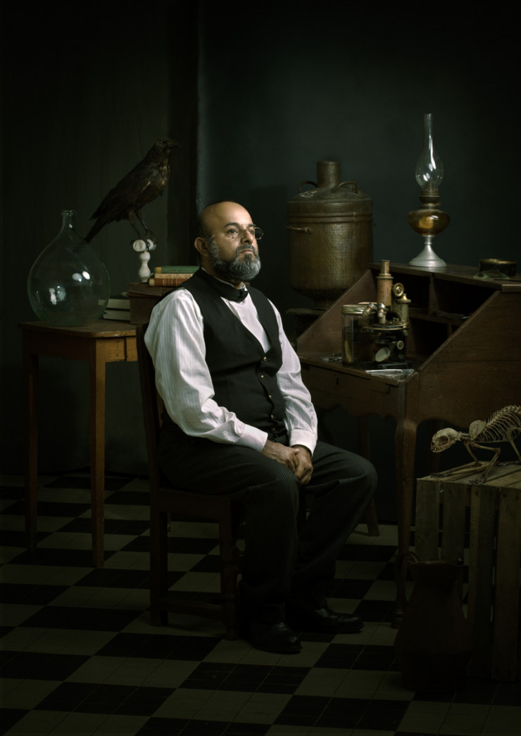 На создание этого портрета фотографа вдохновила картина Альберта Эдельфельта, на которой изображен химик Луи Пастер. Французский фотограф стремился передать понятную и в то же время непонятную атмосферу и серьезного персонажа.
