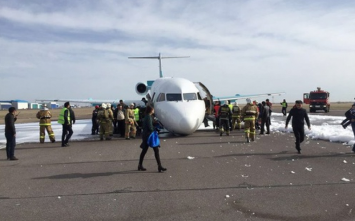 А нижеприведенное видео было снято 3 мая 2019 года в 12.50 на рейсе Атырау - Алматы. На видео Fokker-100 авиакомпании Bек Air. Самолет произвел посадку без переднего  шасси.