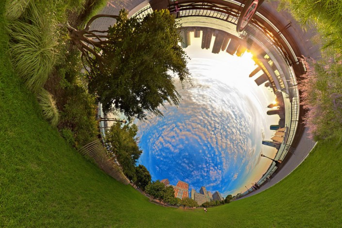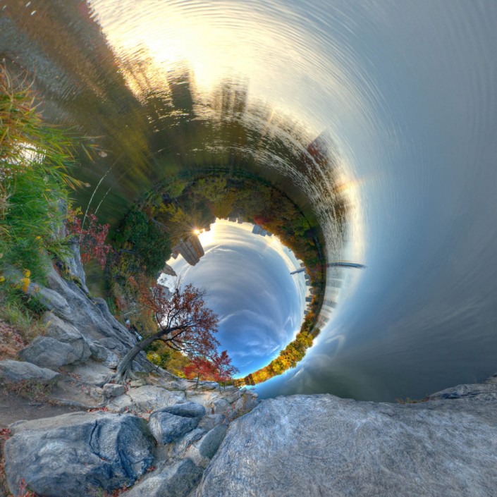 Нью-йоркский фотограф и режиссер Рэнди Скотт Славин (Randy Scott Slavin) создает удивительные 360-градусные панорамные фотографии, которые входят в серию "Альтернативные перспективы" (Alternate Perspectives). Он использует фотокамеру с высоким разрешением и штатив. Славин может снимать сотни фотографий, которые затем сшиваются в единое изображение.
