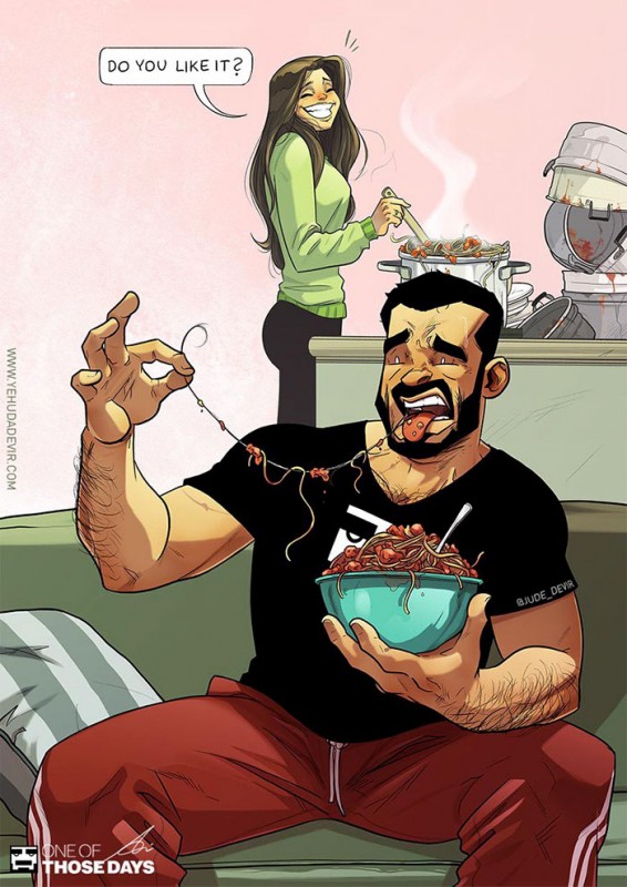 Жить с женщиной. Художник отразил в комиксах смешные моменты семейной жизни Иллюстрация: Yehuda Devir