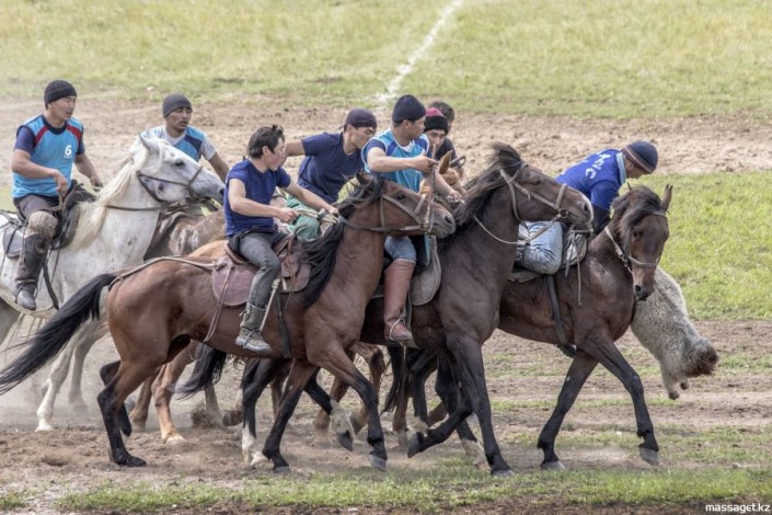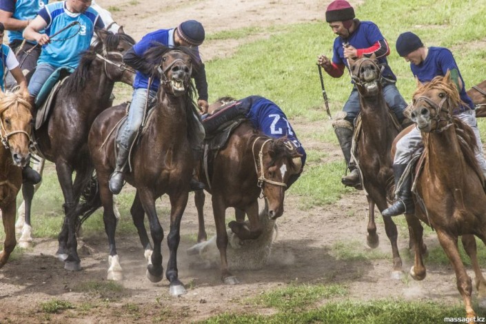 Позже присутствующие увидели национальные игры "Теңге ілу", "Қыз қуу" (догони девушку), "Аударыспақ" (борьба всадников на лошадях) и "Көкпар".
