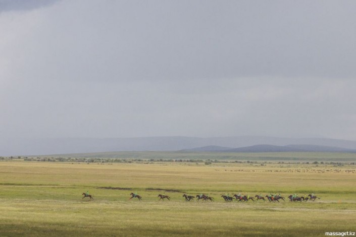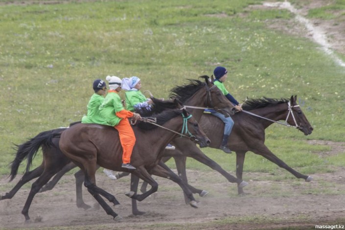 В скачках участвовали и дети. Они преодолевали короткие дистанции "Құнан бәйге" на 11 км и "Топ бәйге" на 16 км.