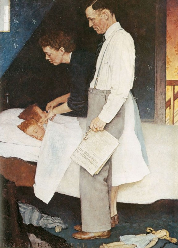 Его полотна могут даже в самые темные времена зажечь свет в сердцах людей. "Свобода от страха" стала одной из культовых картин послевоенного времени — теплый и мирный вечер, когда родители укладывают спать своих детей. Роквелл таким образом выразил свободу от страха, вдохновившись речью Рузвельта о "всемирном сокращении вооружений до такой степени, что ни одна нация не будет в состоянии совершить акт физической агрессии против своих соседей и любых других стран".