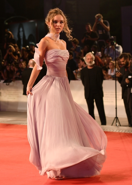 Дочь популярного актера Джони Деппа и Ванессы Паради актриса Лили-Роуз Депп тоже восхитила своим образом на красной дорожке перед премьерой фильма Дэвида Мишо "Король".