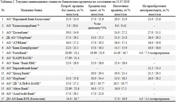 "Лидерство по приросту ссудного портфеля в июне у Народного банка (+60,1 миллиарда тенге). Вместе с тем лидером по росту ссудного портфеля с начала года является Kaspi Bank (+101,5 миллиарда тенге). В июне средневзвешенная ставка вознаграждения по выданным кредитам в национальной валюте юрлицам составила 11,7 процента (в мае - 12,5 процента), физлицам - 19,1 процента (19,3 процента). Менее выраженная динамика снижения процентных ставок у физлиц обусловлена в том числе сохраняющимся повышенным кредитным риском в отношении розничного сегмента", - отметили в АФК.