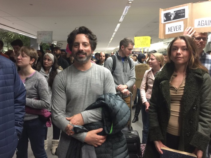 Один из основателей Google Сергей Брин, семья которого эмигрировала из СССР в 1979 году, присоединился к акции протеста в международном аэропорту Сан-Франциско, где 28 января собрались несогласные с новым указом Трампа. "Я здесь, потому что я тоже беженец", - отметил он.