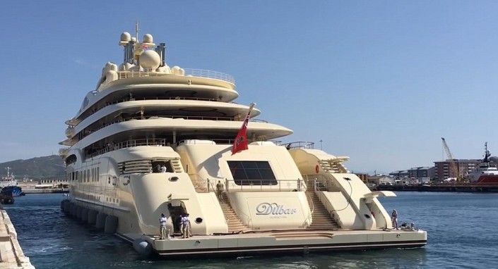 Валовая вместимость (гросс-тоннаж) 156-метровой яхты Dilbar (по имени матери предпринимателя - прим.) составила 15 917 тонн. По длине судно Усманова уступает яхте Azzam семьи шейха Халифы бен Заида Аль Нахайяна (180,6 метра), Eclipse Романа Абрамовича (162,5 метра) и Dubai принца Брунея (162 метра), однако по внутренней вместимости Dilbar на первом месте.