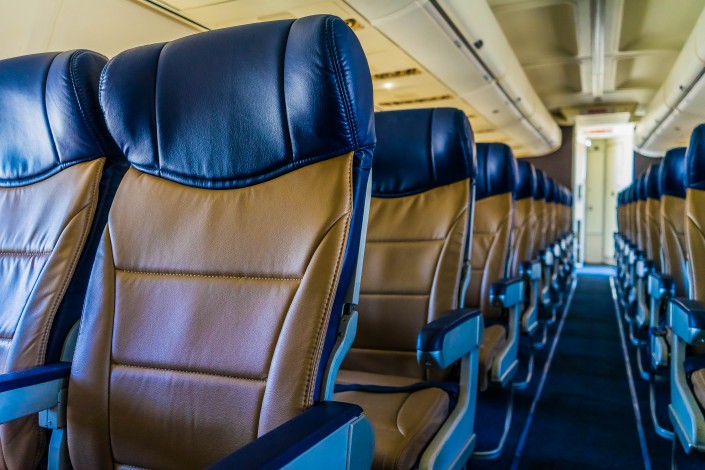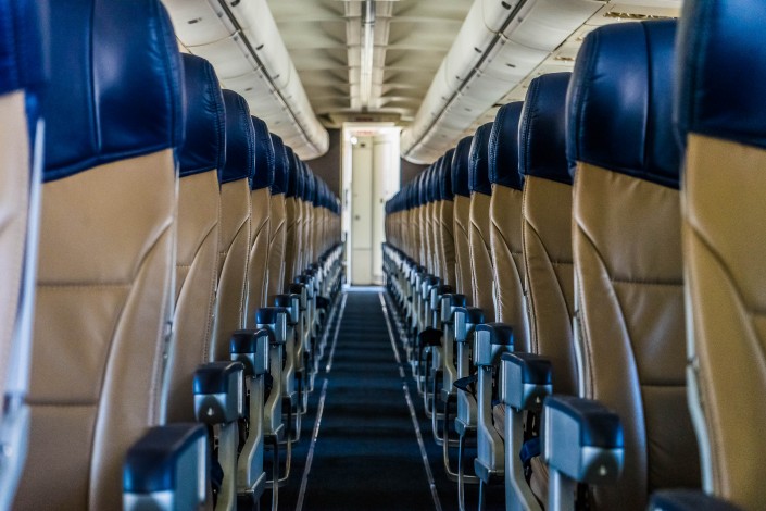 Вместимость пассажирского салона - 146 кресел. Мягкие подголовники обеспечивают дополнительный комфорт во время полета. Интерьер в коричнево-бежевых тонах создает благоприятную, расслабляющую атмосферу.